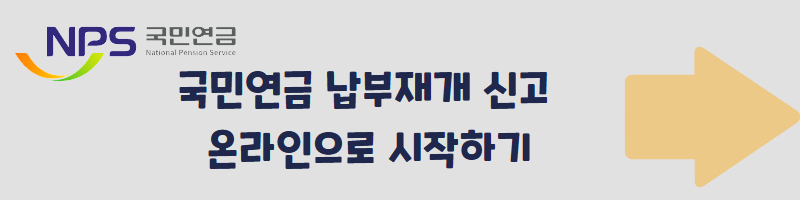 | 방문 / 우편 / 팩스 | 연금보험료 납부재개신고서 1부 | 납부 예외 사유를 입증할 수 있는 서류 (실업급여 수령 확인서, 휴·폐업 사실증명 등) |